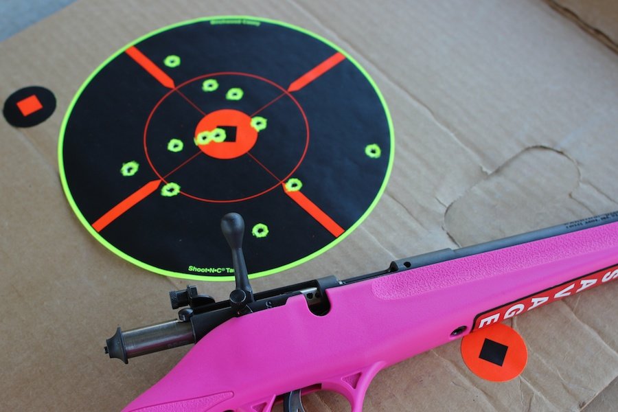 Oh, my daughter loves this bolt .22 Here’s is not pink BTW since she is more of a tomboy. She is very happy not to “pull to the cock knob” on the bolt like the other kids bolt guns do. It makes reloading easy and faster. I’ve seen kids with cock knobs point the gun down while holding the barrel between their knees to pull the cock knob. Not safe at all. Thanks Savage for such an improvement! Shooting with shorts, the extrator works fine. The longs tend to have more of the issue getting stuck here or there. The shoulder strap works well too.