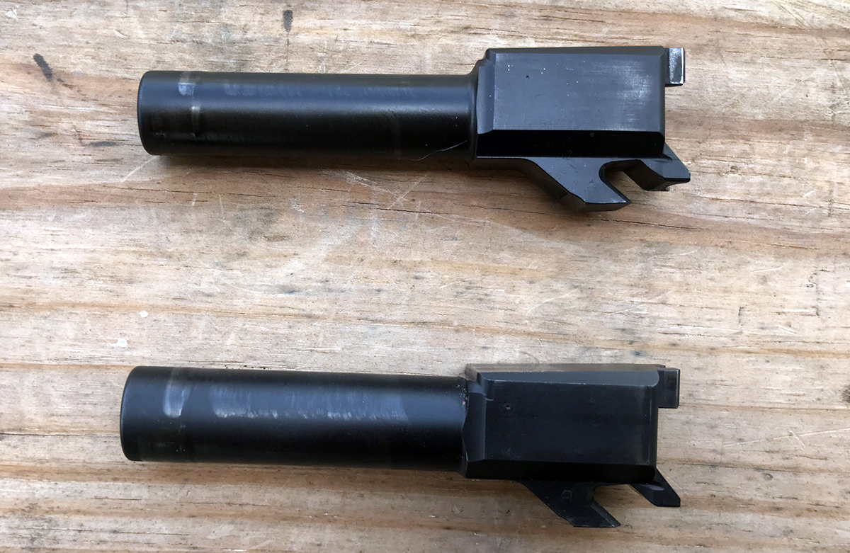 The Mod.2 barrel (top) is slimmer and lighter than the previous version.