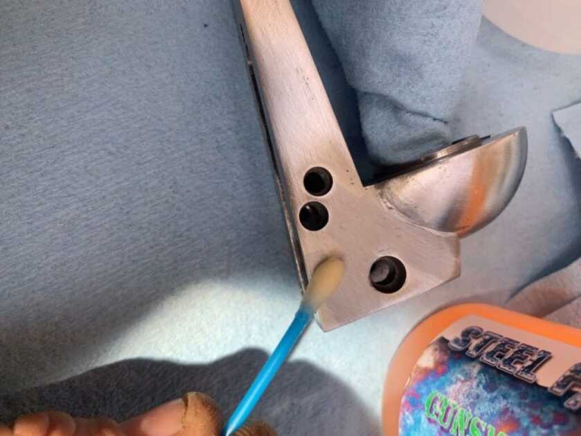 The first step is to completely disassemble the frame or whatever parts you’re working on. If you built a revolver from a kit like this one, then you should be familiar with this process. Then, you need to polish the frame or parts you want to finish. If you’re working on a “kit” revolver like this one, you might have already done a chunk of this when you did the clean-up work on the frame. But I’m going to go over the polishing process some anyway, just in case you didn’t or are using this process on some other project.
