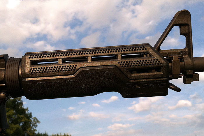 There are so many forends and hand guards on the market, but the trend is to upgrade big. Truth is, key-mod isn’t for everyone. Some stubby carbine length forends are heavy, and aren’t comfortable. Some aluminum rails transfer heat right into the hand. The A*B Arms rail is well designed without being overkill. It is simple, and effective.