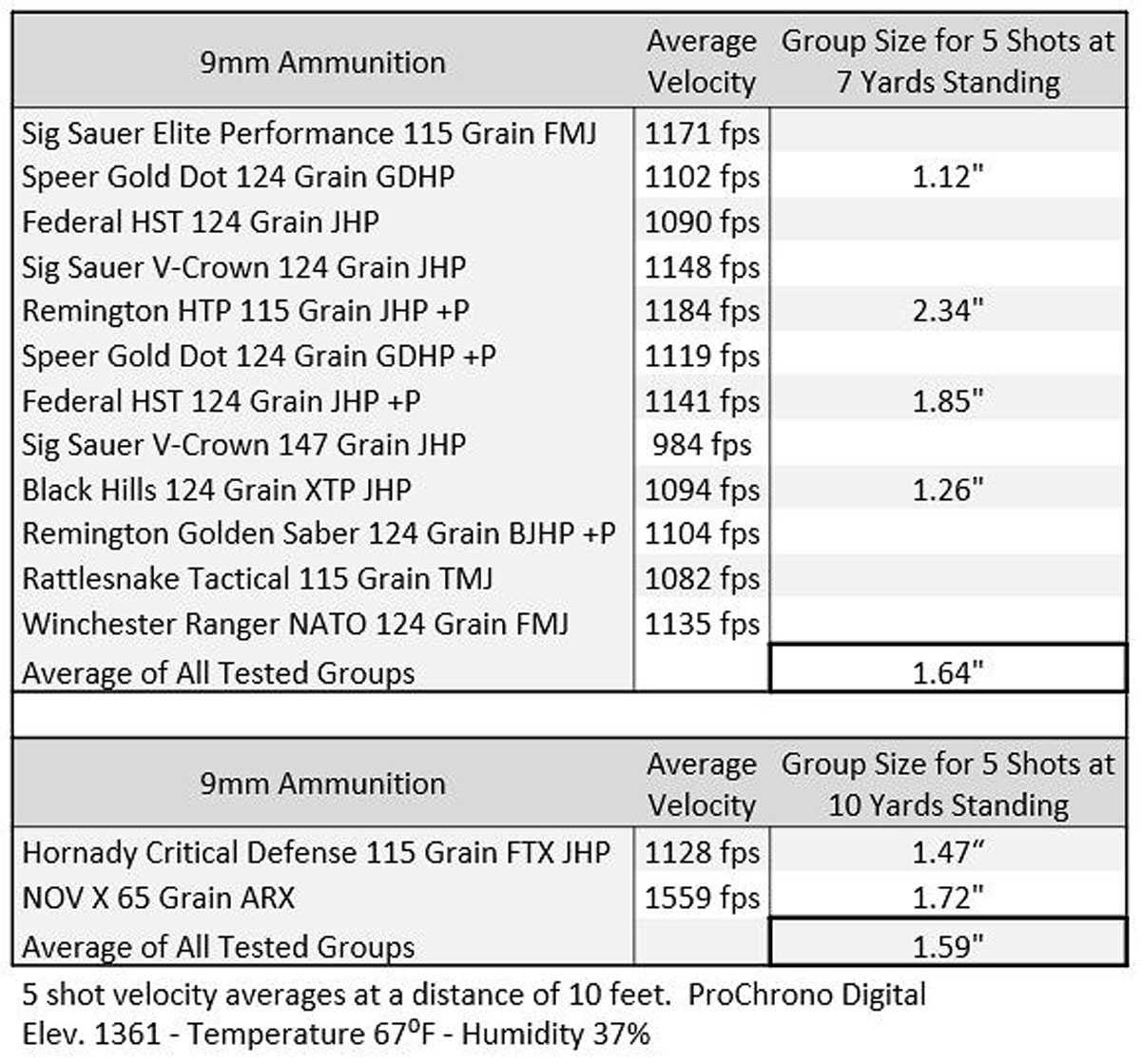 On the second trip to the range, I took along a large variety of standard and +P pressure ammunition. All loads were tested for velocity and function. Some were also tested for off-hand accuracy at 7 and 10 yards. The AM2 was easy to shoot with good accuracy. I did have some intermittent stuck on feed ramp issues with the largest hollow point projectiles. The Sig Sauer V-Crown bullet profile does not appear to be compatible with the AM2 feed ramp. All other loads fed, fired, and extracted without incident.