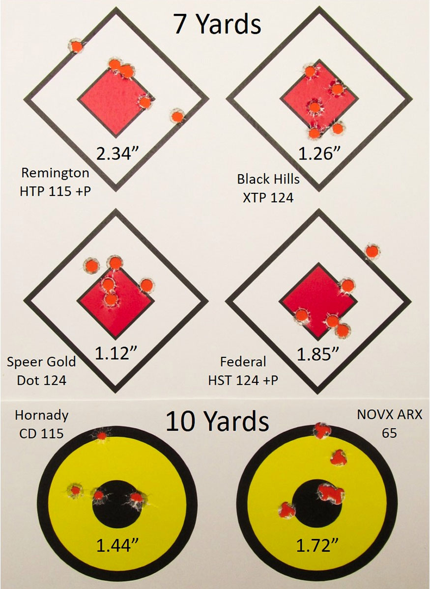 Off-hand accuracy was satisfactory. At 7 and 10 yards the combined average of all groups was less than 2 inches.