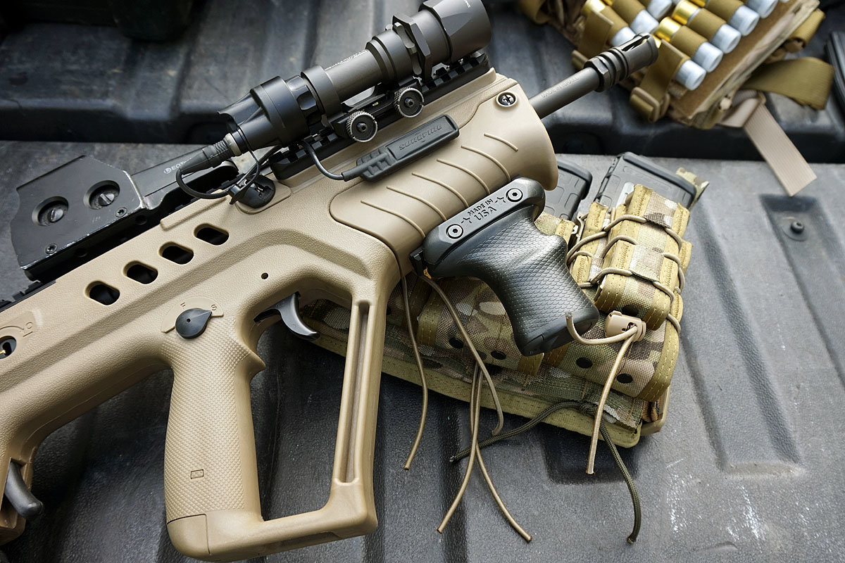 BullPup Armory’s T-REx rail helps. Otherwise, you may have to strap on the T*Grip with duct-tape (not recommended).