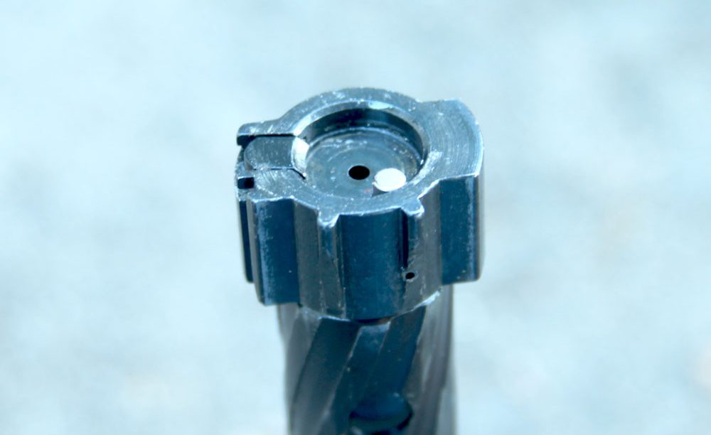 The unique MVP bolt head is designed to reliably strip rounds from a standard AR-15 magazine. The key is the steel flap that hangs down to catch the round, then pivots up in battery.