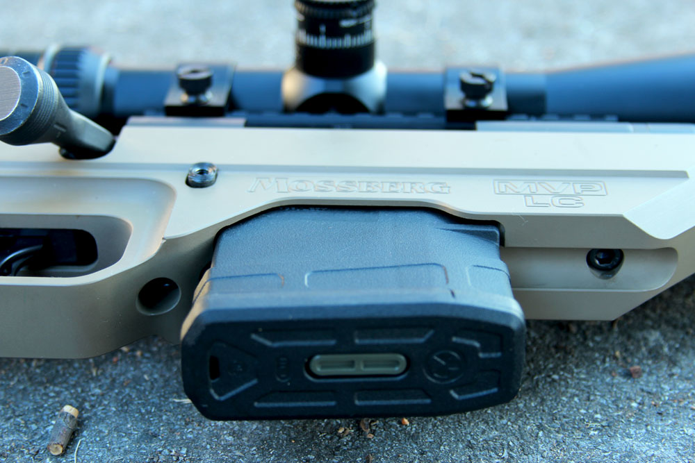 The Mossberg MVP-LC features an aluminum chassis that accepts AR-pattern parts, and the rifle feeds from AR-pattern magazines. The adjustable length-of-pull stock and Magpul MOE grip made shooting from alternate positions easy and comfortable.