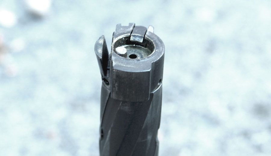 There are some slight differences between the 5.56 and 7.62 models, but their basic configuration is just about the same. The action itself on the 7.62 version is similar to the 5.56 action, but it is larger and has a longer overall length, which shouldn’t be that surprising considering the action has to handle the larger 7.62 round.  The 7.62 action distinguishes itself from its little brother in the way the rounds are picked up from the magazine. Instead of using a steel flap like on the 5.56 bolt, the 7.62 has two small lugs on the bottom of the bolt that act in a similar way as the lugs on a 7.62mm AR bolt. These lugs move along two corresponding slots in the action and the feed ramp during the cycling process. You also get about two more inches of barrel on the 7.62 version compared to the 5.56 MVP LC, but it features the same SilencerCo muzzle brake for recoil reduction, albeit designed for .30-cal rifles. The 1:10 twist rate ensures that it can easily stabilize most common .308 Winchester ammunition.