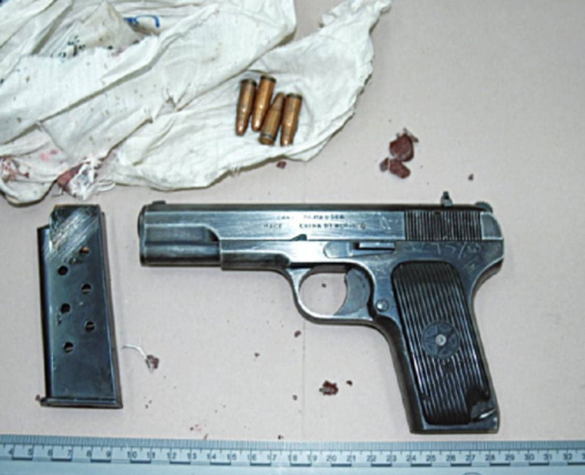 There was a 7.62x25mm Norinco Type 54 pistol recovered from the scene. Type 54 was a Chinese copy of the Soviet TT33 Tokarev service pistol. Type 54 was a common Pakistani police sidearm, and Pakistan had no shortage of illegal arms venues.