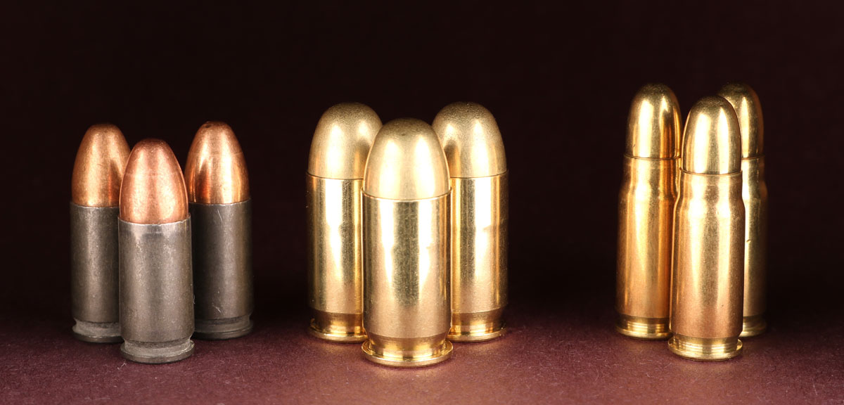 From left to right we see the 9mm Parabellum, the .45ACP, and the 7.62x25mm Tokarev.