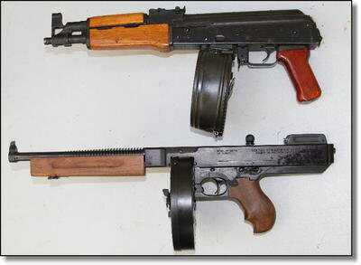 I found the drum to be unwieldy for a tactical situation, much like this ban era AK-47 pistol that had a 75 round drum soldered onto it. If we could all hip shoot accurately it might be effective, but ammo is still too expensive to practice that much. |