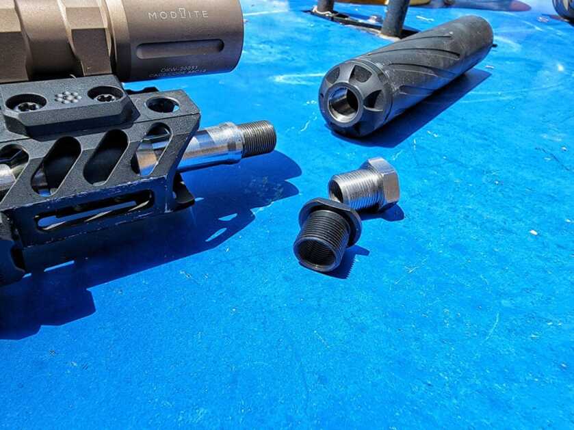The second best way is to have your rifle muzzle threaded. It’s important that this be done by someone competent so that the threads are in line with the bore. This usually requires a lathe to do properly. If the barrel is threaded and not in line with your bore then you can have a bullet potentially hit the inside of your suppressor. This is often referred to as a baffle strike and it can cause major damage to your suppressor.