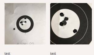 To prove the quality of their work, Johann Fanzoj published images of group sizes. The group on the left was shot with the rifle barrels from 100m using a Swarovski scope, and the group on the right was shot from 35m using the shotgun barrels.