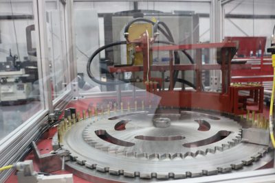 With SIG’s brand new facility, you’d assume the machines would be shiny and new to match the exterior. Think again. There are some new machines, however, some of the heavy lifters on the line that resize the brass, check case necks etc. are from World War II.