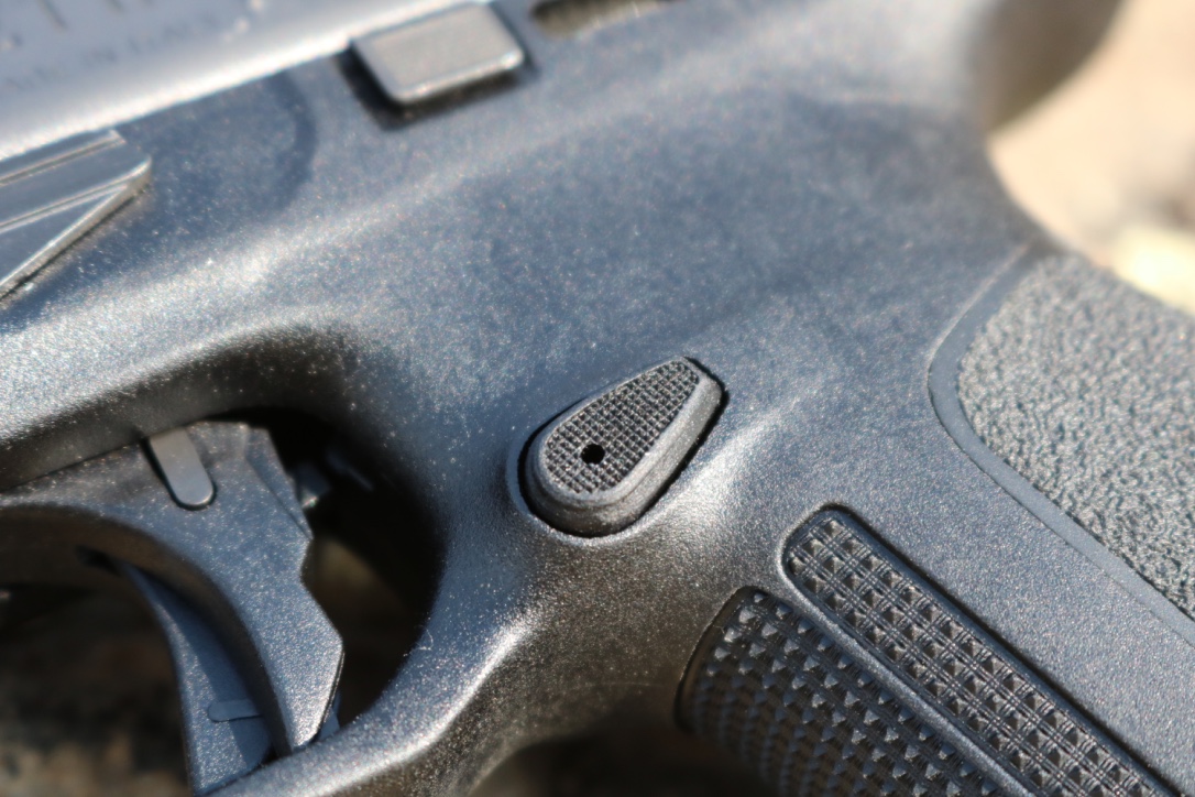 The second distinctive feature is the flat-faced, and wide trigger. It has a safety in the middle similar to other polymer guns, with the flat face many prefer. While I won’t say a flat face is any better than a curved for performance, it does look cool. And is another feature people pay to upgrade on other guns. The width actually does help the trigger feel lighter since your leverage is higher. As fans of the Colt Gold Cup know, it really does work. Again, both new models share this feature.