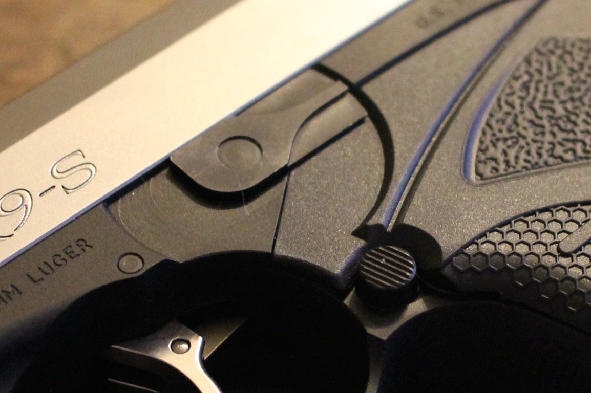 There are no external safeties. This is a plus for concealed carry, in my opinion. The rest of the gun is meant for carry, too. The sights are low and snag free, and adjustable. The grip is thin, textured well, and keeps in line with the guns thin profile. The controls are all accessible, though I had to practice with the mag drop, repeatedly, before I got comfortable with the motion (I have to shift my palm off the grip, slightly, to hit the button).