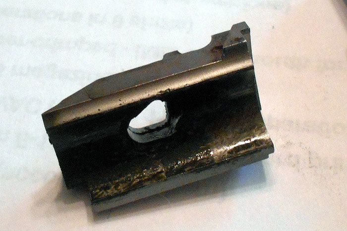 This is the unlock block. The black coloration is from the anti-seize. Boberg recommends two pea-sized drops here, which spread out as shown.