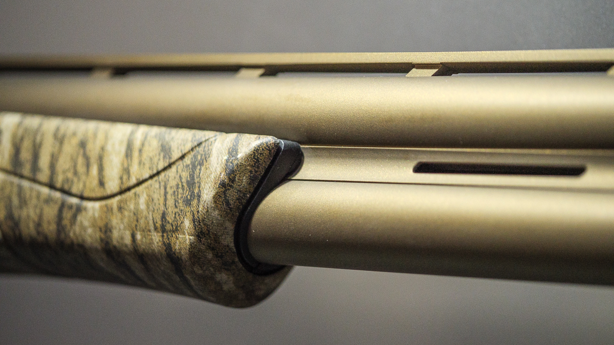 The most notable change is that the chrome-lined barrels are now available finished in Burnt Bronze Cerakote. This will protect your gun against water, dirt, and even salt. even the saftey and selector switch are coated. Only the signature gold trigger isn’t burnt bronze. The receiver is also coated so this gun should last for generations.