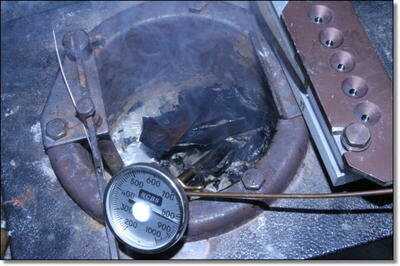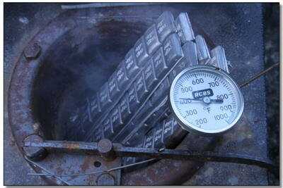 Just an extra warning about water and lead pots. This only applies to molten lead. And it applies to any liquid with a lot of water in it — as my father the plumber said to me “Never spit in the lead pot.” (It had never crossed my mind that anyone would want to spit in a lead pot until he said that!) The water doesn’t sink to the bottom, but vaporizes on contact with the surface, causing a steam explosion and flying hot lead. Even if the lead solidifies in the air, it is till several hundred degrees Fahrenheit and will burn or melt through cloth, thin plastic, etc. I have seen small lead pot blows and it is pretty scary, and NO, I did not spit in the pot — it was from snow on the scrap lead we were re-melting!