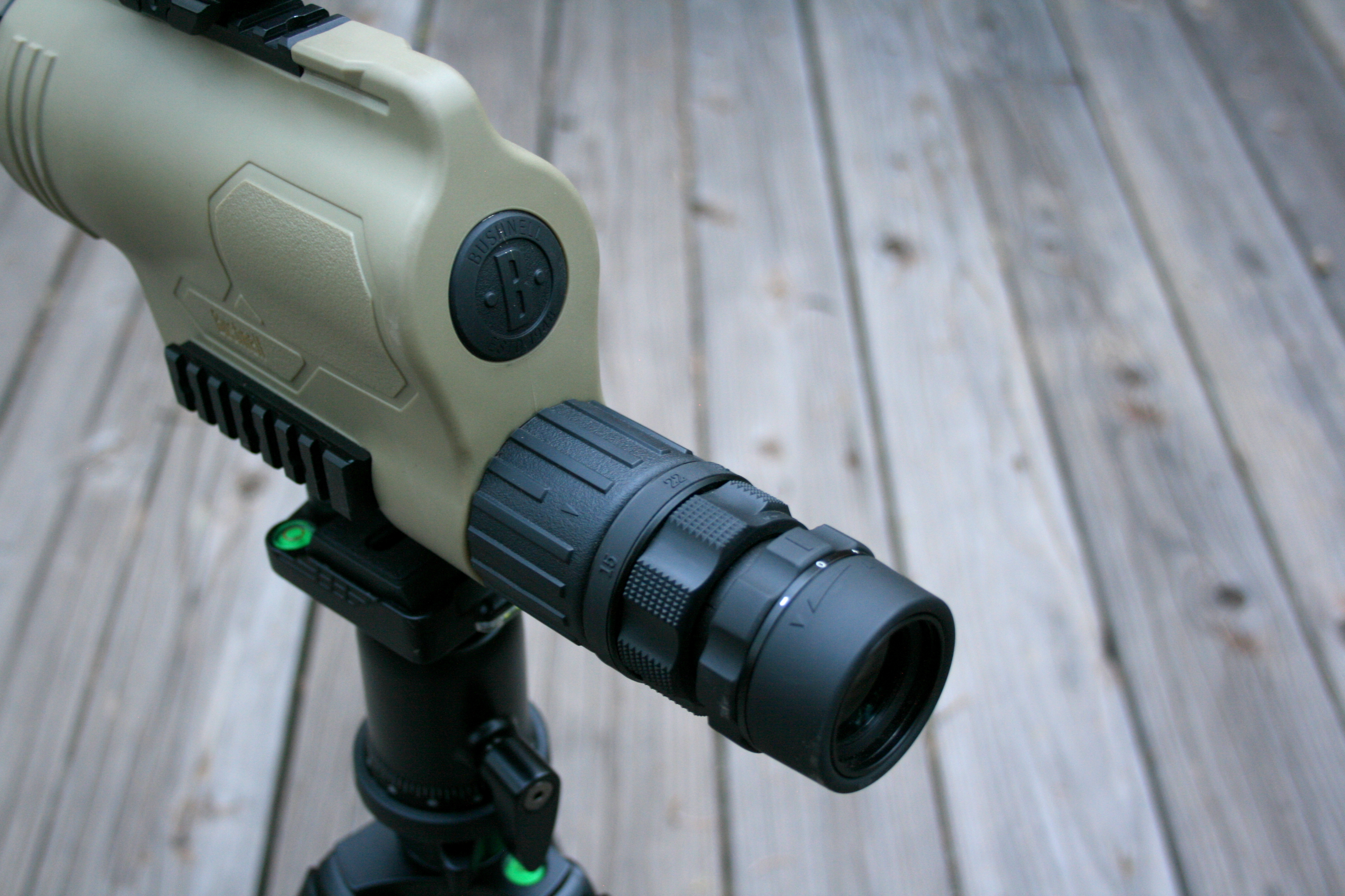 Bushnell Legend T-Series Tactical Spotting ScopeOne excellent accessory that pairs well with the Bushnell Legend T-Series Tactical Spotting Scope is the PhoneSkope. The PhoneSkope allows one to attach their cellphone to a spotting scope to record video, take pictures or simply use their cell phone screen for comfort. The PhoneSkope is ideal for hunters that have vision problems, or for groups of people who are clamoring around a spotting scope.