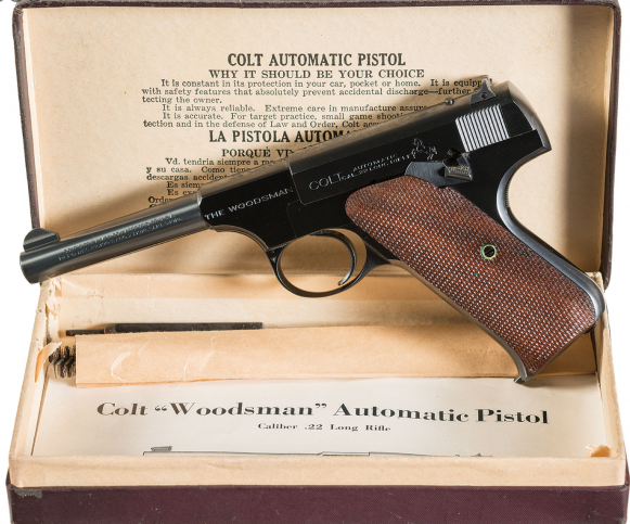Below are a couple of pictures of two Colt Woodsmans. They were both sold at Rock Island Action recently. One was listed as being “almost new in the box” and it even came in it’s original box. It sold for over $4,800. The other one is far from new looking. It is actually older and a bit more collectable example as it is one before they were stamped WOODSMAN. But the cosmetic condition is pretty poor without a whole lot of bluing left. It sold for about $600. It is functionally in great shape and you can read my full review of it here.