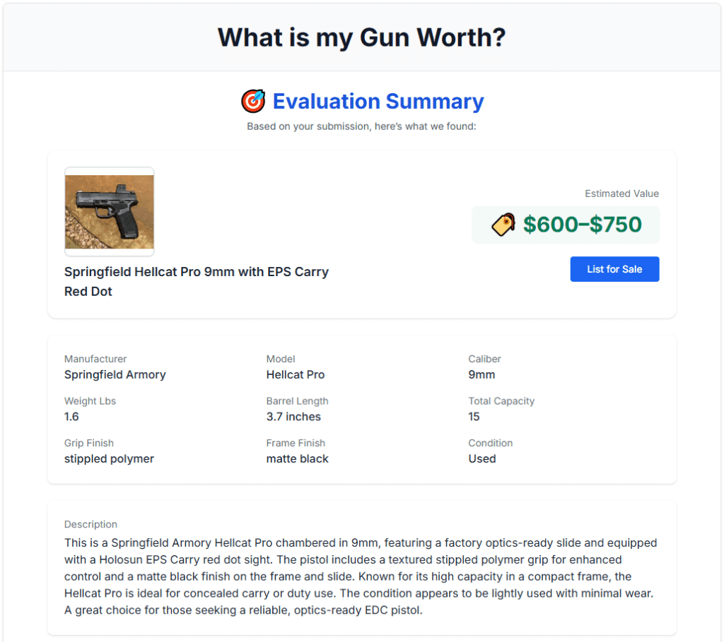 Published: July 21, 2025 { 0 comments }GunsAmericaAI is a groundbreaking suite of artificial intelligence tools designed to simplify the process of firearm valuation and online selling.