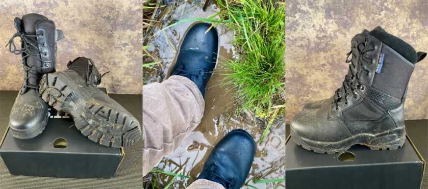 They have a waterproof membrane and 400 g of insulation. 5.11 uninsulated boots are great, so 5.11 offering these in a colder weather version is good to see. The slip and oil-resistant rubber sole has an aggressive tread for sure footedness in uneven terrain. A side zipper gives you a head start to loosen them up if you have to get them off in a hurry. A full-grain leather toe and 840D nylon upper protect your feet from rocks and poky things. $190 in black.