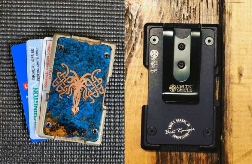 You too can own a wallet like those carried by elite Rangers. I have two of these wallets, one I have used for well over five years and one I recently purchased. I bought one for each of my immediate family members as well. They are great for a front pocket carry and easily hold credit cards, driver’s license, etc. (mine has five cards in it now). You can put a few bills in with your cards, or you can opt for a version with a money clip on the outside. Challenge coin slots are available as well if you so desire. Celtic Shield can custom engrave your wallets for special occasions, awards, etc. The craftsmanship on these wallets is well worth the $98 price. They are available at Celtic Shield.
