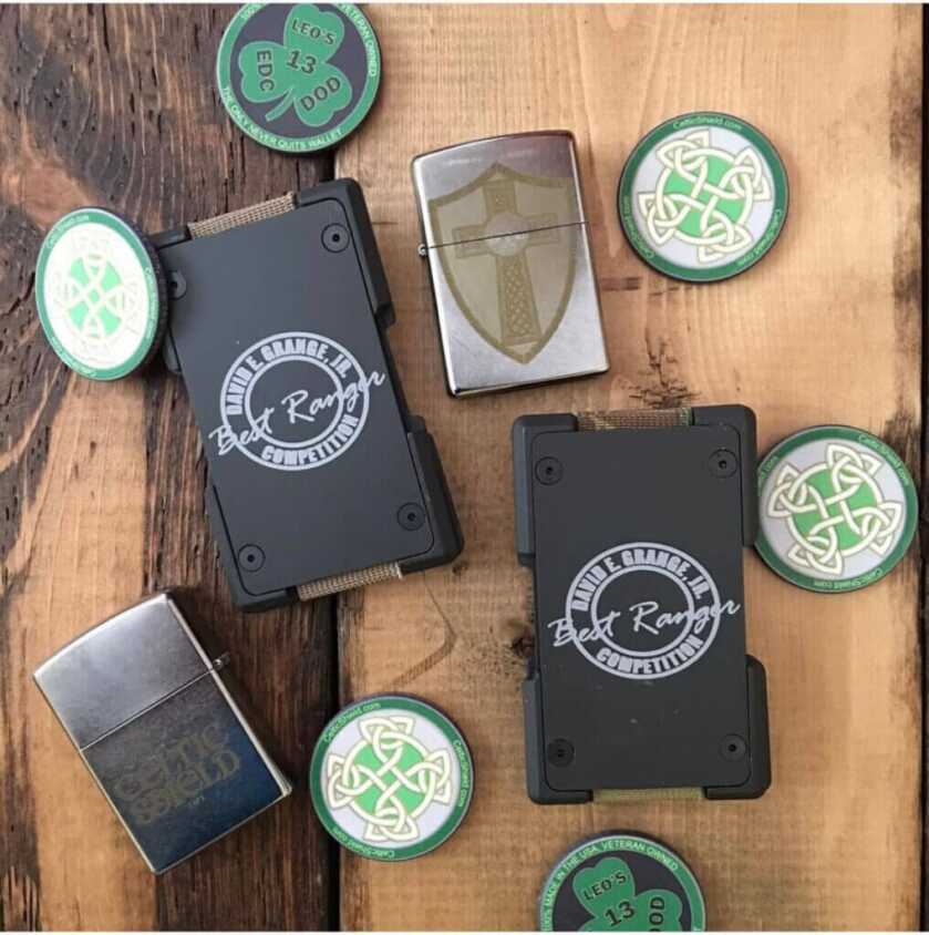 At the end of the Best Ranger competition, in addition to an extremely elite title, the winners receive special prizes that include custom pistols and engraved wallets. Since about 2017 the wallets have been donated by Celtic Shield, a company owned and operated by a service-disabled veteran. Celtic Shield makes these RFID-shielded metal wallets and engraves them with a Best Ranger David E. Grange, Jr. logo. The company also makes RFID proof passport holders that I wrote about here.