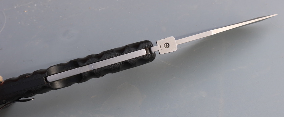 The handle is cut to also resemble a Greek sword, which I find to be one of the best features of the knife. With the grip folded around your fingers fore and aft, the feeling of security for your cutting chores is like no other. This is one of the few folders I would have no issue stabbing into anything, as there is virtually no fear of inadvertently slicing my own fingers.