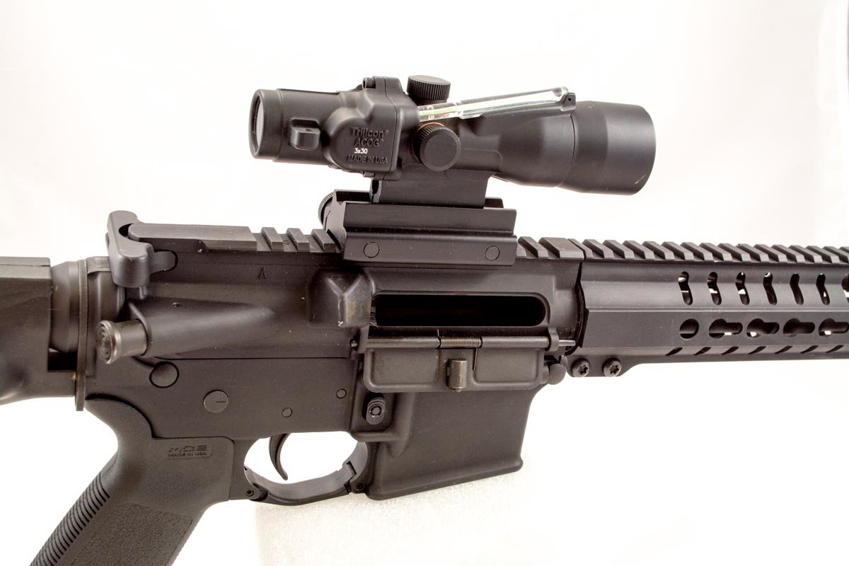 From the factory, the Mk4 comes with an A2 flash hider. I added this SilencerCo Trifecta flash hider and suppressor mount to make it easier to test with and without the silencer.