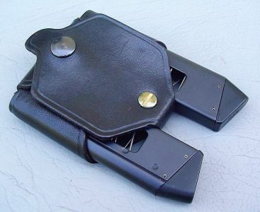 Seventrees produced a number of accouterments that complemented the design and function of the ASP. The DCL was an abbreviated double magazine pouch that utilized a magnet to retain the magazine. While offering both traditional and inside the waistband holsters, the most unique holster was the SMZ shoulder rig. The SMZ was a skeletal holster with a tri harness that carried the pistol in a muzzle up position. According to the Seventrees catalog, the SMZ was “restricted.” The catalog also states, “These are shown, fitted and demonstrated on a personal basis only to officers or operatives with verified credentials.” The portion of the photo that shows how the holster secures the pistol was actually cut out of the catalog page.
