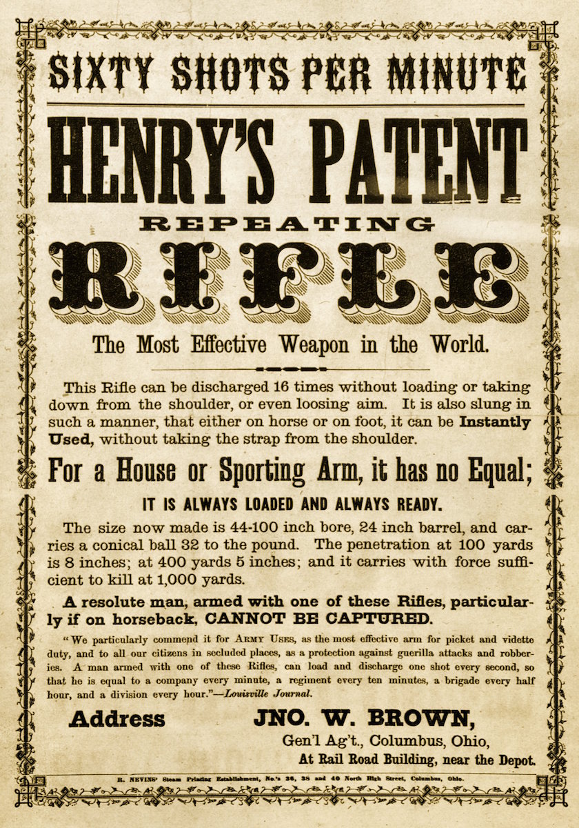 One of many Henry advertisements during the War Between the States. Image courtesy R.L. Wilson, from his book Winchester An American Legend.