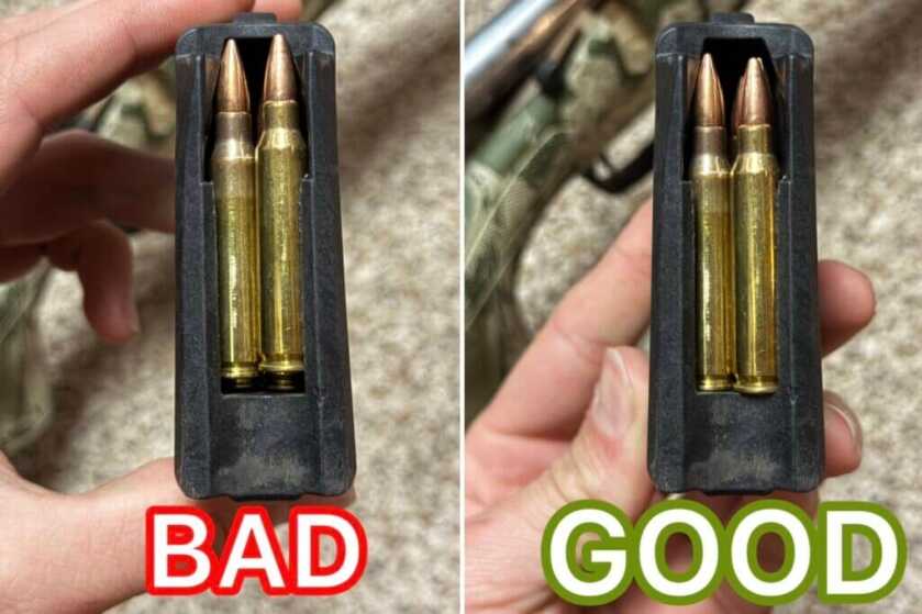 However, the rounds binding up were simply due to improper magazine loading. If the rounds aren’t fully seated toward the back of the magazine, the bolt will catch when cycling. But when the rounds are properly pushed to the rear, as shown in the image below, the rifle cycles smoothly. Even with all the grit, the action ran well when the mag was loaded properly. Just a quick tip for anyone looking to run this rifle without a hitch.