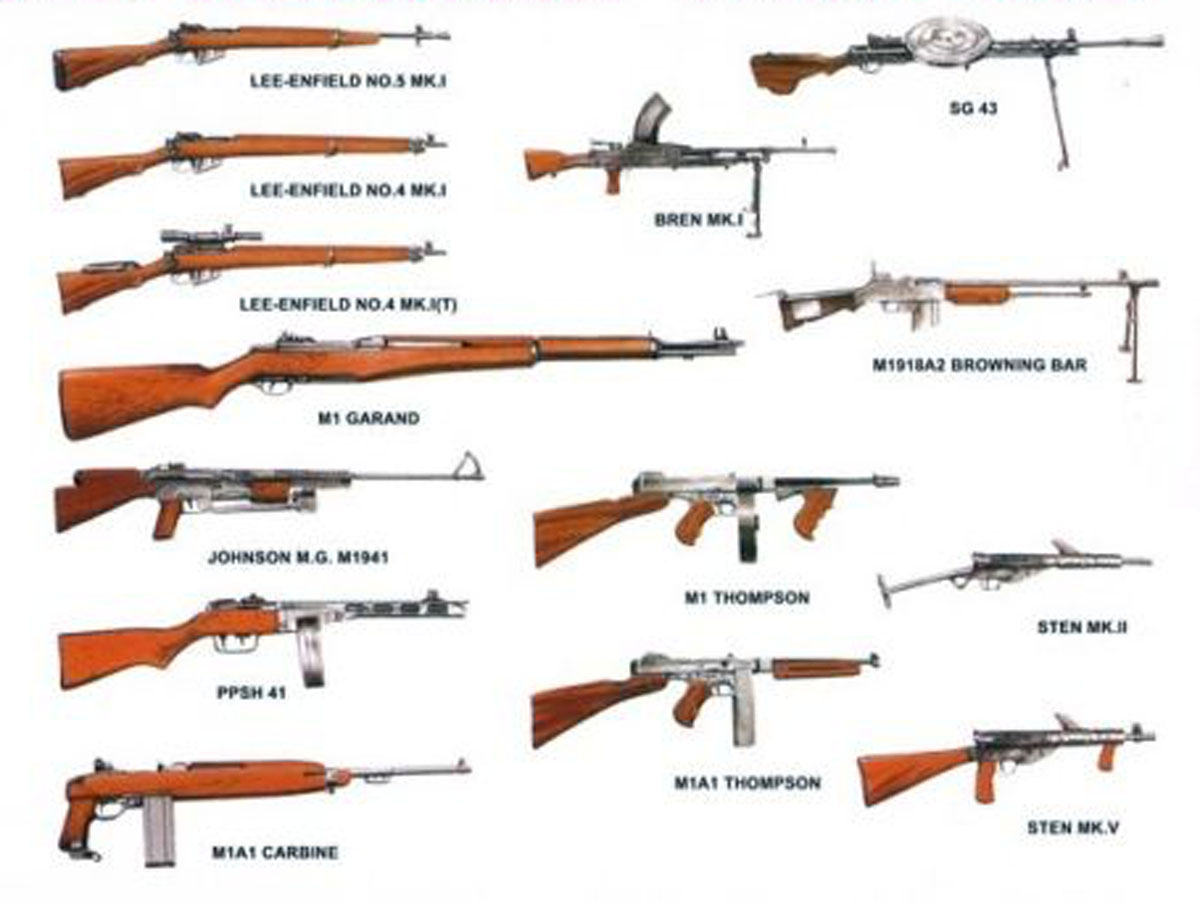 The identification chart has one error on it – It shows a picture of an M1928 or 28A1 as an M1 Thompson. Just had to post. The picture of the M1A1 is correct as near as I can tell. That one had a side cocking handle, and the ’28 had a top cocking handle and Cutts compensator with a machined”artillery” rear sight, the MI just had a strap iron peep hole rear sight, and no compensator.