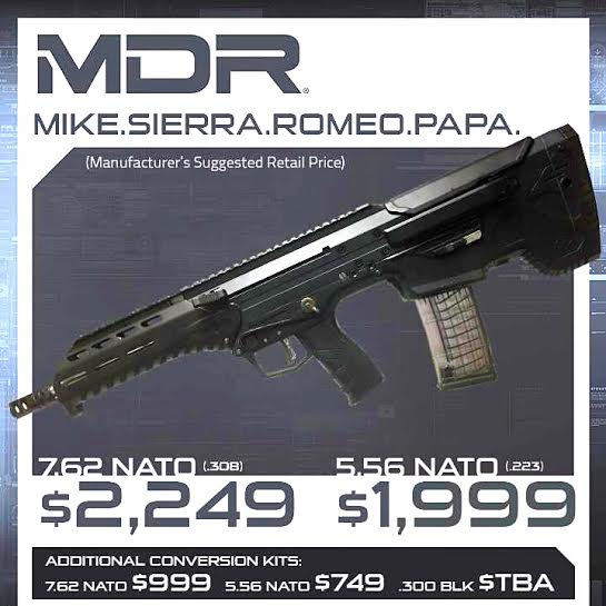Desert Tech has also published the price of the conversion kits, which are likewise competitive at $749 for 5.56 NATO and $999 for 7.62 NATO. All of these are MSRP which is near the top for in-store prices. As is, most real-world prices should be less, although with the amount of excitement surrounding the MDR, you never know what people will pay.