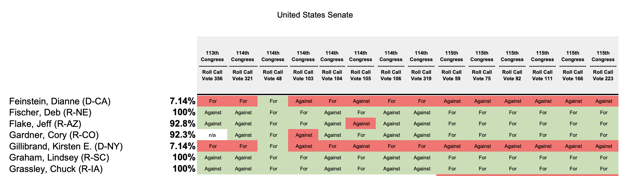 Who knew that Sen. Dianne Feinstein actually voted for one pro-gun bill over the past several years. Hence Feinstein’s 7.14 percent rating. She’s still a gun-grabber! (Photo: NSSF Scorecard)