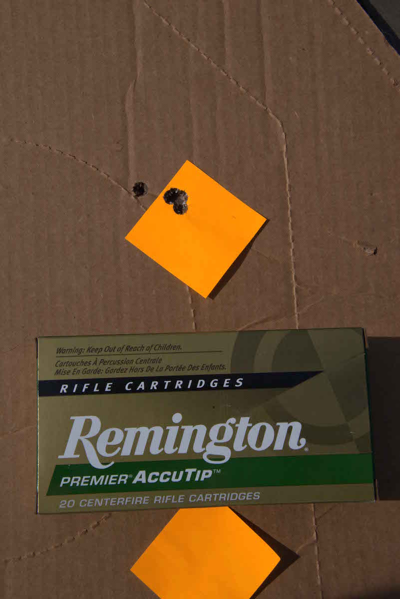 Remington’s 165-grain Premier AccuTip was also very accurate, although it always seemed to result in a fifth round flyer.