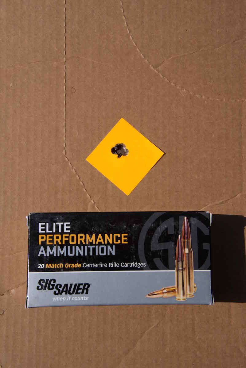 The author’s best group came from Sig Sauer’s 168-grain OTM Match Grade Rifle load measuring just outside .50 inches.