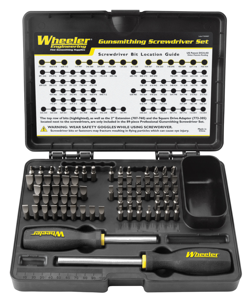 If you own guns, you need good screwdrivers. Wheeler’s Deluxe Gunsmithing Screwdriver Set is a well-thought-out bit selection that won’t bugger, bust or leave burred-up screws. They’re made from S2 tool steel and hardened to 56-58 Rockwell “C”. These bits were tested against the screws of over one hundred modern and antique firearms, to ensure that they will work on your gun.