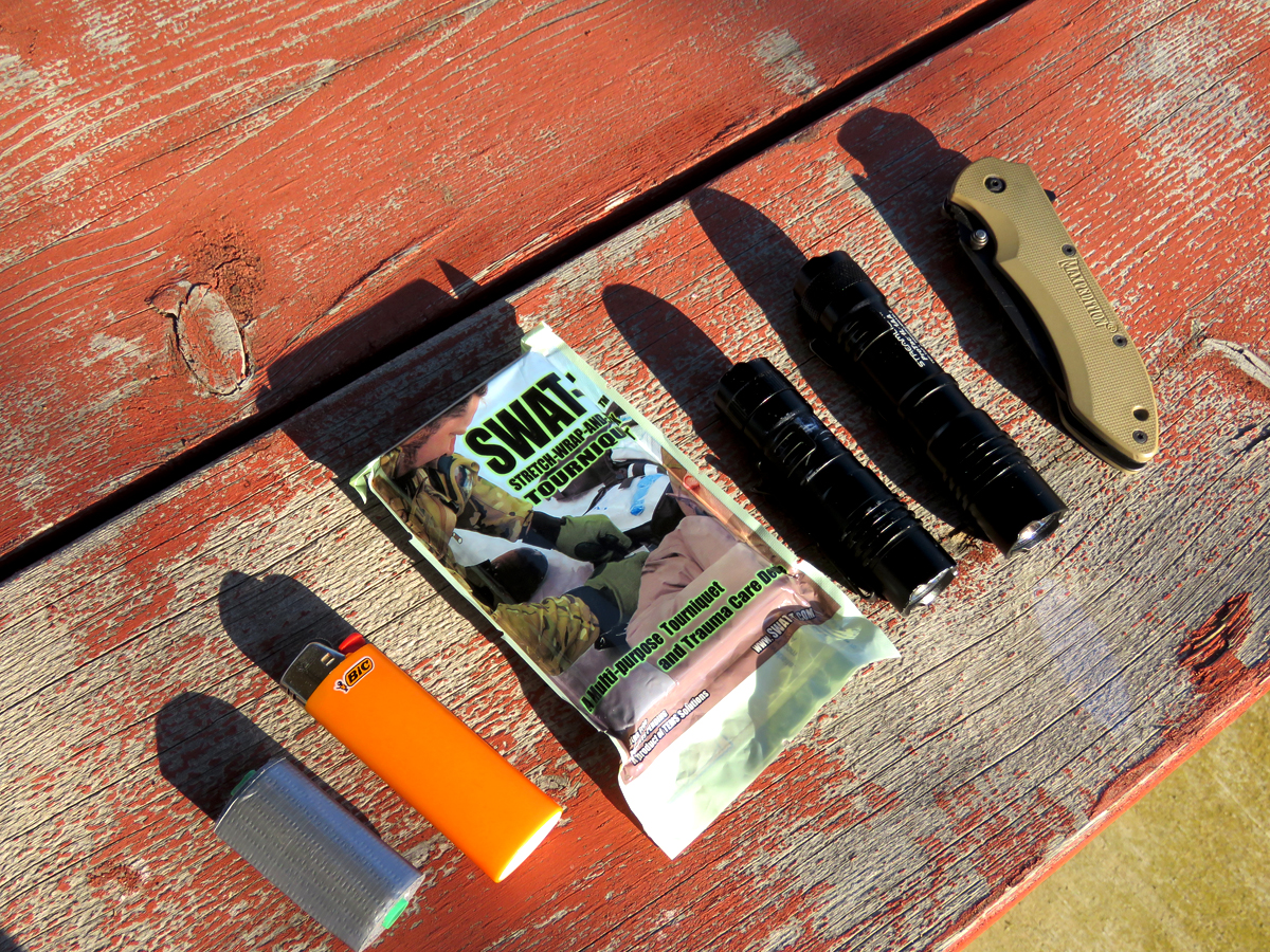 To wrap this up, my philosophy is that if I can carry these items on my person at all times while I’m concealed carrying then I can handle just about any situation that may occur.  Even if I can’t carry my pistol the bulk of these items will allow me to effectively deal with emergencies and help me get home safe.  I can defend myself, create warmth for myself, treat injuries, navigate, and even signal for help. Everyday carry items are going to be as varied and individual as the people carrying them but one principle should not change, if you carry it, know how to use it.