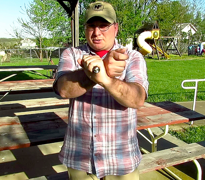 With the light oriented bezel down, the author knows that when he can index it coming out of his pocket and the bright side will be pointed toward the threat.