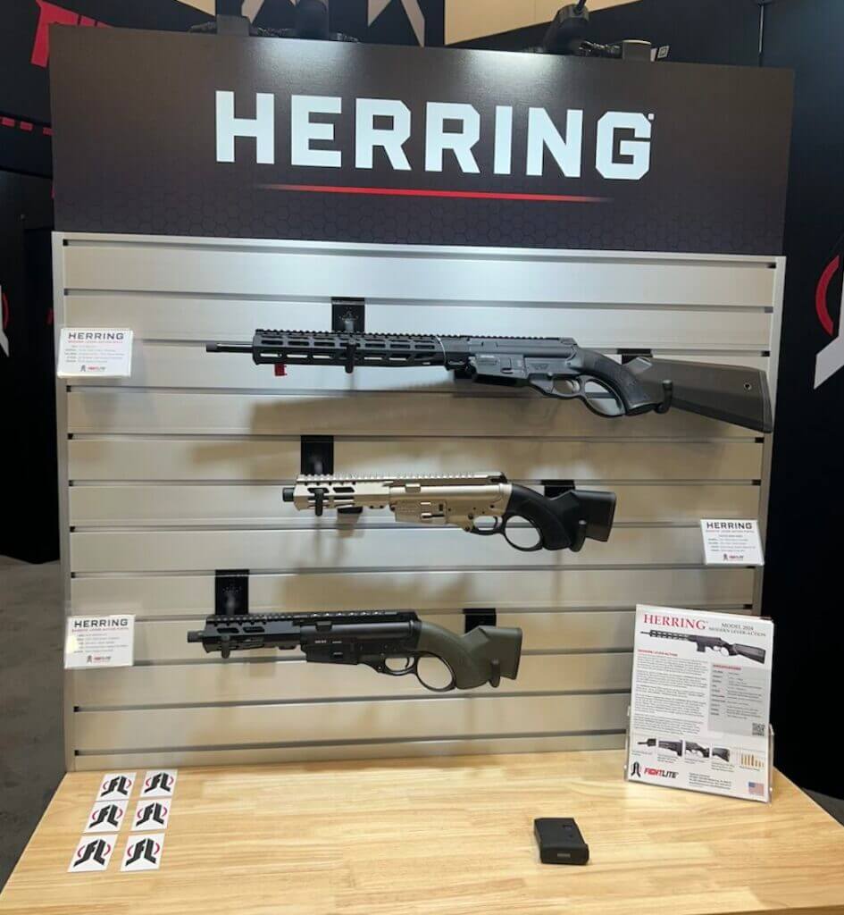 First up, we have the brand new FightLight Herring lever-action rifle. This innovative hybrid firearm features an AR-15 upper receiver on FightLight’s unique lower receiver. The action is easy to operate and you’ll be surprised how fast you can work it.