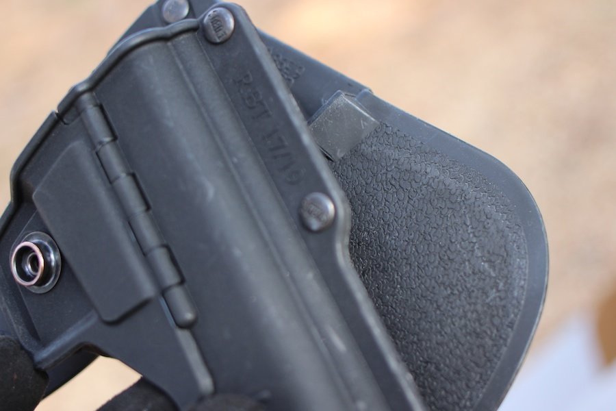 The Tactical holster is robust. The snap holds securely, even through rough abuse. The gun can’t fall out, despite how it looks. The top of the holster is low, which makes it easier to clear.