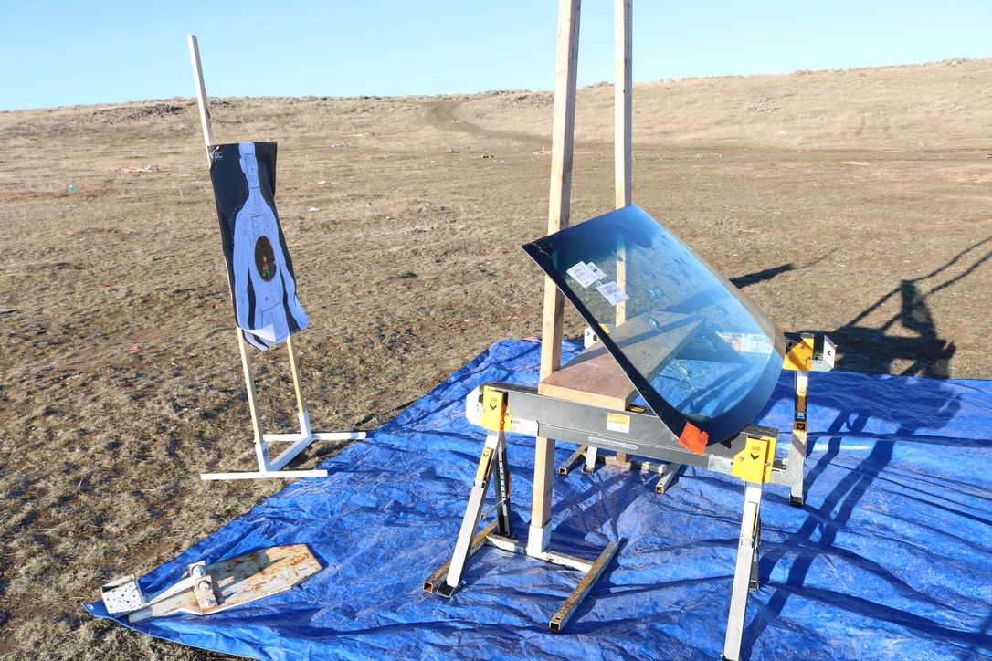 But to the problem part, glass does weird things to bullets. Even regular plate glass, sitting straight up and down, presents an issue. Enough so that the DOD spends mountains of ammo and time figuring out exactly how to shoot through it, reliably. The getting through part isn’t really much of an issue, especially if you brought lots of bullets. The crux of the problem comes from predicting where your bullet will go after. This isn’t a big deal when you are talking about a situation that is all bad guys. Shoot a lot, the glass will be gone in short order, and a couple of flyers is a small price to pay. But what if you have a mix of bad guys and not bad guys? All of a sudden, using a belt fed machine gun seems like less of a good idea.