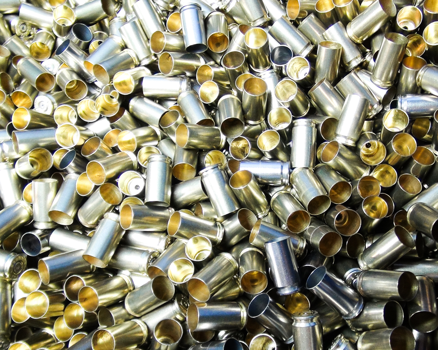 To get the pins out of the cases dump them into a rotary media separator and fill the lower tub of the unit with enough water to ensure the cased will be submerged as you rotate the basket. As you rotate the basket the pins will be washed out of the cases and settle to the bottom of the lower tub. Other methods will often result in pins sticking to the inside of the cases. Since I switched to the rotatory separator I haven’t found a pin inside the case.