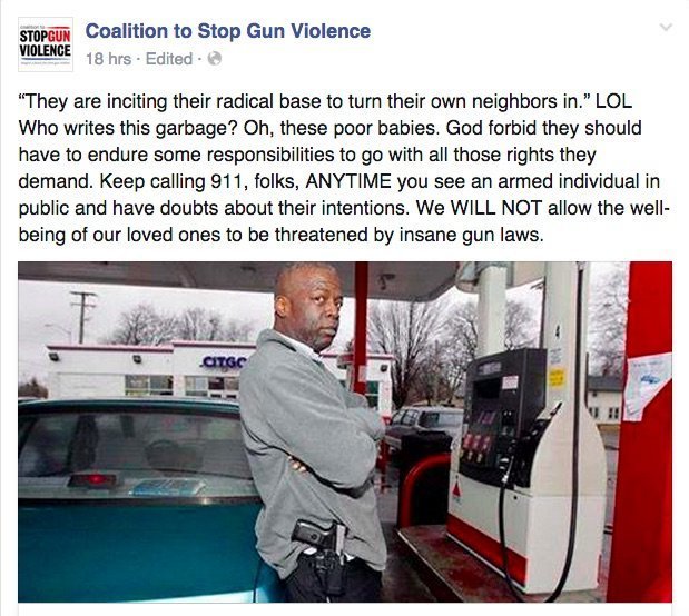 The Coalition to Stop Gun Violence has a very simple message for citizens who see a gun owner exercising his Constitutional right to keep and bear arms in public: If you doubt their intent, call the police.