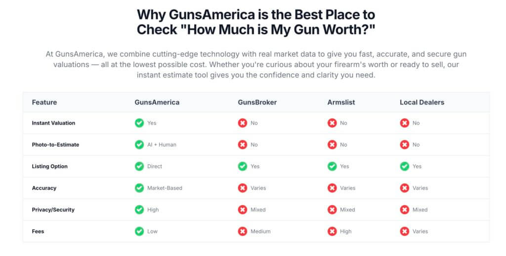 At the heart of this innovation is the “What Is My Gun Worth?” tool, an AI-powered solution that enables gun owners to receive accurate market-based valuations in seconds. By analyzing thousands of comparable listings, real-world pricing, and visual cues, GunsAmericaAI delivers a detailed estimate to help sellers make informed decisions — no guesswork required.