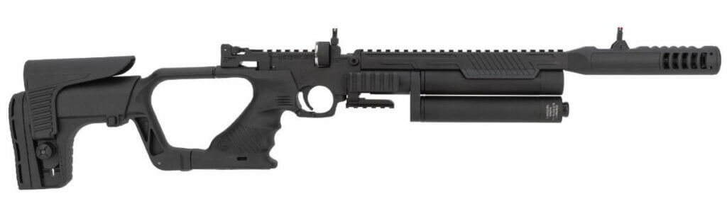 Powering this beast are two 40cc tanks, which can be filled to 250 BAR. As a rifle, the small platform makes a compact tool, and as a pistol, the JET 2 QER becomes a powerful, versatile, and lightweight option. In both configurations, the specifications remain the same.