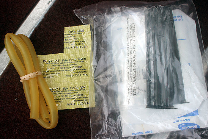 • 1 ft flexible latex tubing (for use as a tourniquet, or great for getting water, gas, etc.).