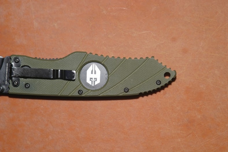 The handle is equipped with olive G-10 handle scales with large round cutouts mid-handle. Handles are offered in two different styles, smooth and chiseled grips. Indexing cutouts make transitioning between forward and reverse grip easy. With a little practice, switching grips becomes second nature. The handle boasts aggressive jimping which I found useful in preventing any knife slip. Even when cutting up some vegetables with wet hands, it stayed in place. Hoffner designed the end of the knife for pressure point applications and the top of the knife as a blunt striking object. The pocket clip is reversible, low profile making it snag free and sits deep in the pocket, which I prefer, resting tip-down. And for those who like to decorate your knives, feel free to add a lanyard.