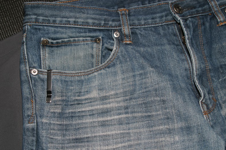 First off, this knife is a joy to carry because the pocket clip is well made. One of my biggest pet peeves on knives are dinky, weak pocket clips that bend after a week- not the clip on the Hoffner folder. It may look small, but it’s stout. Plus it’s reversible, key for us lefties, and slim making it nearly invisible to others. The clip is sturdy and sits deep in the pocket hidden from door frames and countertops that seem to be knife magnets. The clip is not flush with the handle, but it hasn’t come loose. The knife takes up more real estate in my pocket than I’d like, but it’s also a bigger blade than I normally carry. I noticed the olive G-10 scales start to turn slightly blue from being in my jeans- not a big deal and might come off if I cared to clean it.